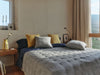 Hacer la cama y oler a limpio. Decidir si el azul es tu color esta semana, si buscas relajación, pero te encantaría combinarlo con algo de chispa. Buscas un amarillo. Colocas capa tras capa, ajustas la bajera, fuerte, con decisión. Tu cama, un sueño.