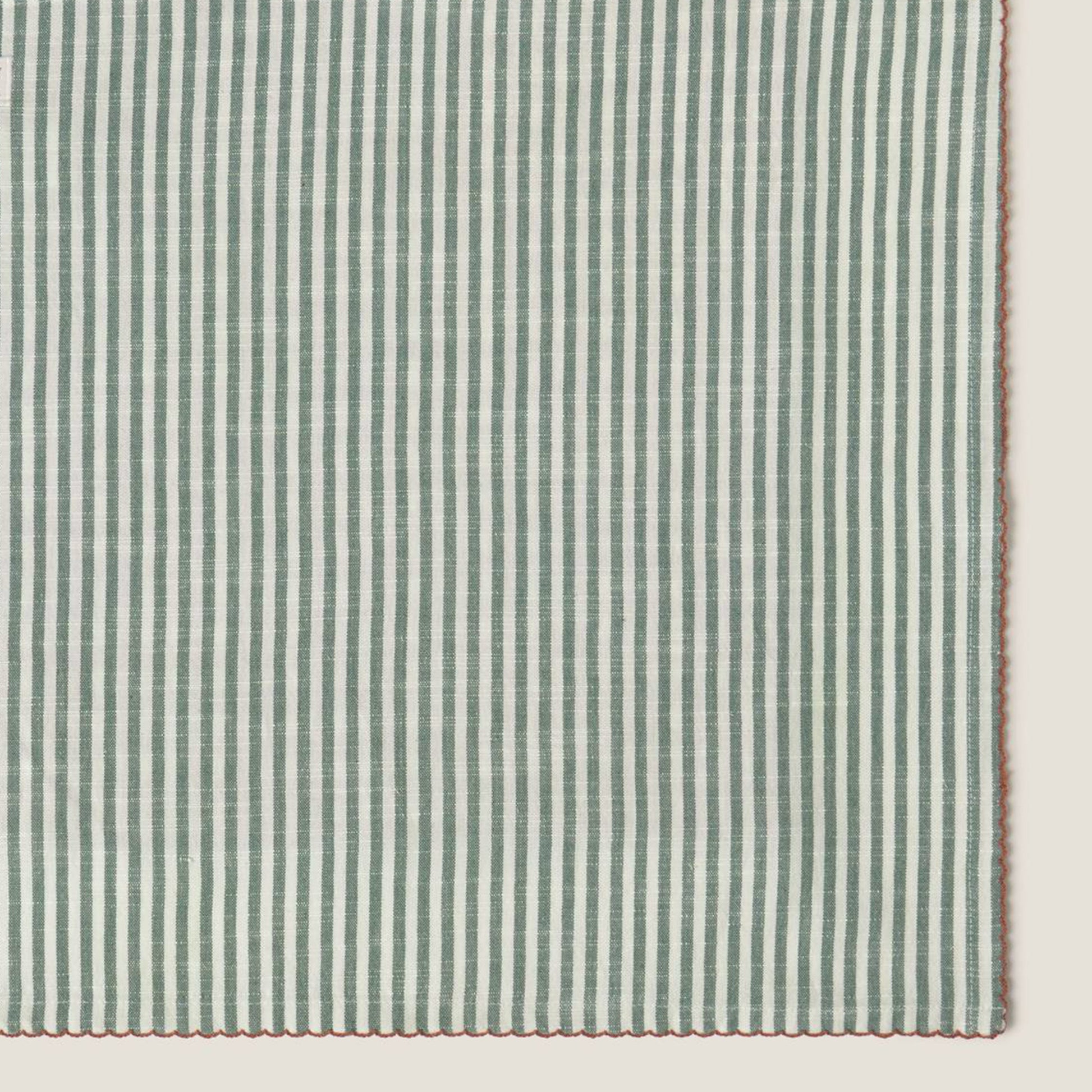 <p>Este set de 2 servilletas es perfecto para dar un toque personal y acogedor a tus comidas en casa. Están confeccionadas en algodón 100% y presentan dos diseños distintos que combinan entre sí: una con cuadros vichy en rojo y crudo, y otra con finas rayas tejidas en verde y crudo. Ambas se rematan con un delicado pespunte en tono teja que realza el estilo tradicional y artesanal del conjunto.<br><br>